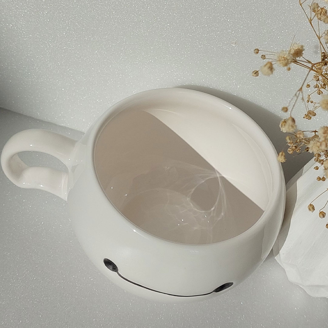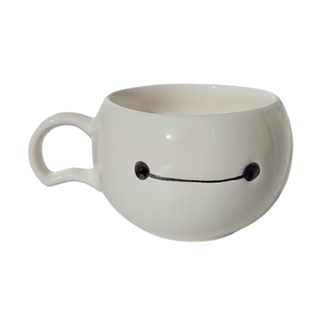 با رنگ سفید ساده و چهره‌ی بامزه‌ی بیمکس که با دو نقطه و یه خط کوچولو طراحی شده، این ماگ یه نماد قشنگ از سادگی، مهربونی و مراقبته.